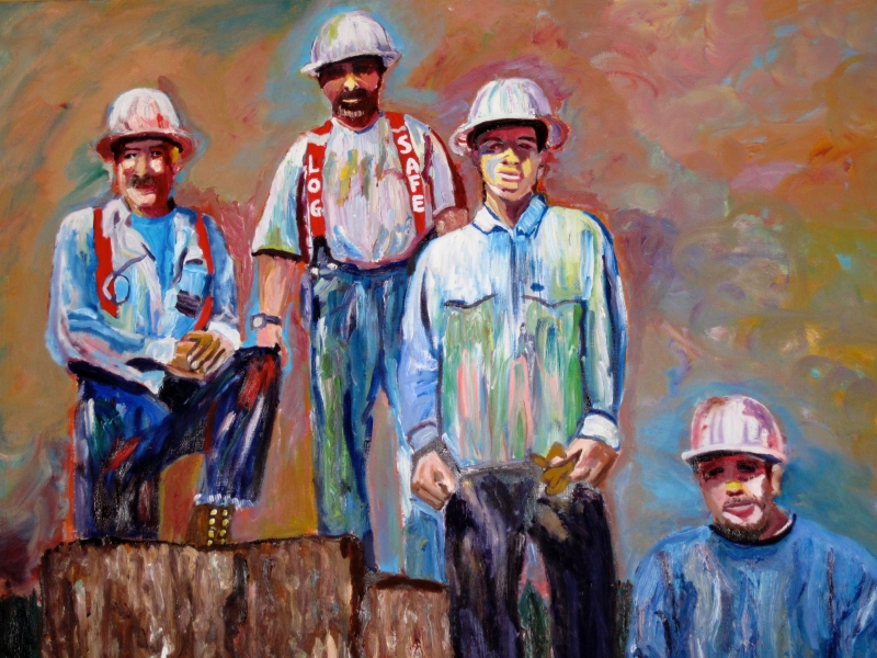 48" x 60" Oil on Canvas This a painting of part of our logging crew